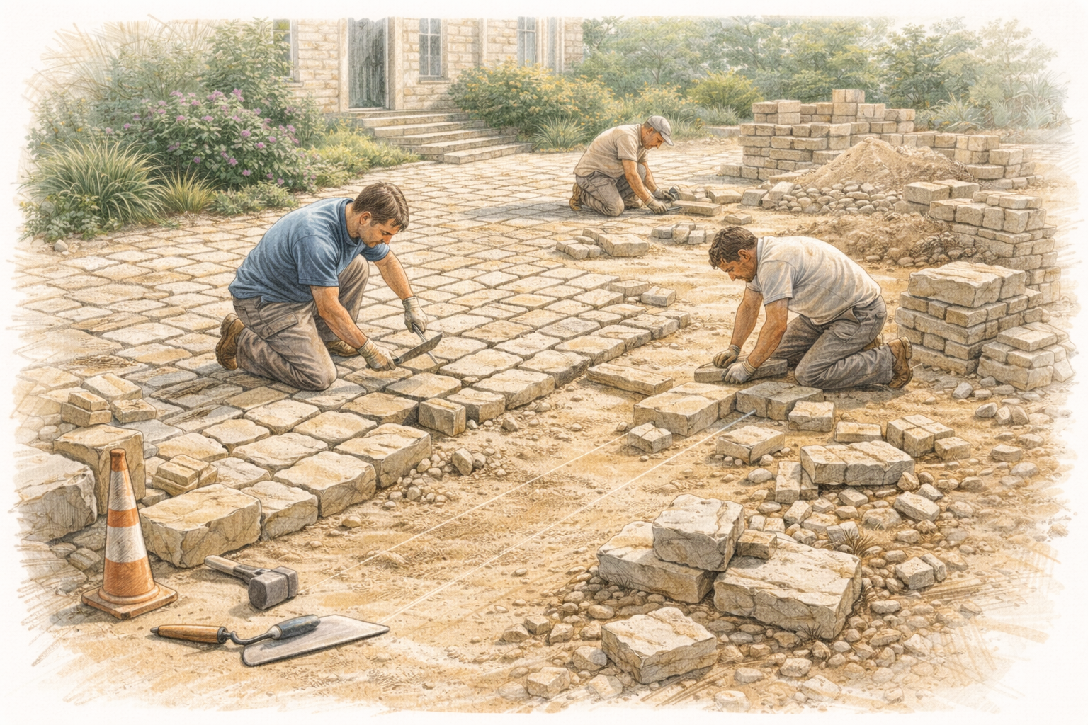 Chez Azur Pavage, nous transformons la pierre naturelle pour donner vie à des espaces uniques, solides et intemporels.